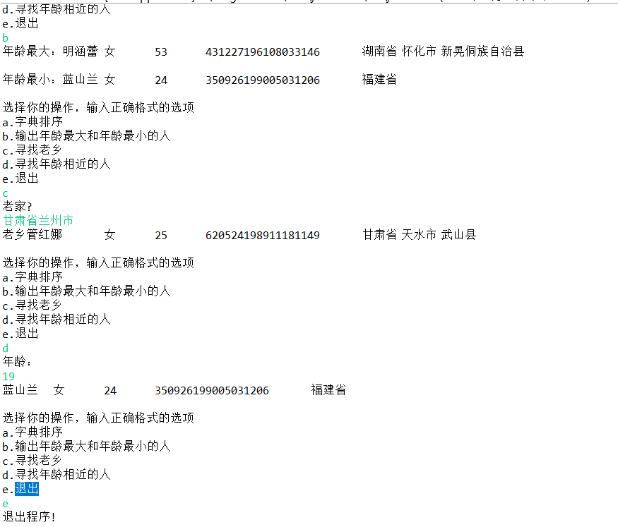 System.out.println("b.输出年龄最大和年龄最小的人");