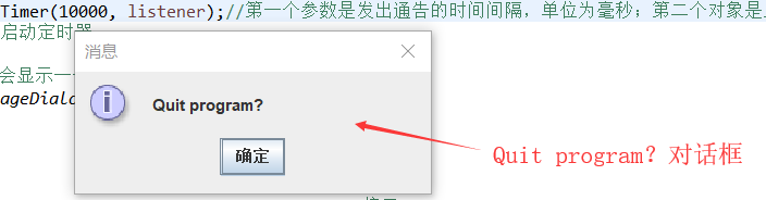 ●接口与回调:回调:一种程序设计模式,可以指出某个特定事件发生时应该采取的动作。java.swing包中Timer类,可以使用它在到达给定的时间间隔时触发一个事件。