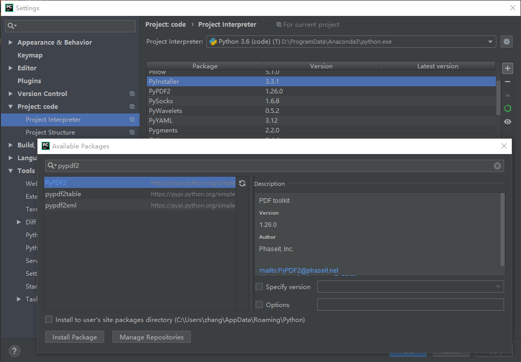 安装其他插件,PDF处理采用PyPDF2,exe打包采用pyinstaller