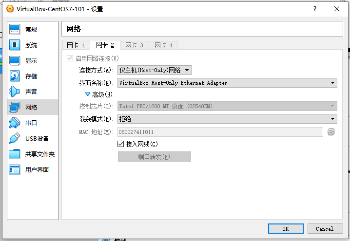 - host-only(虚拟机和主机互相通信,使用192.168.56.x段)