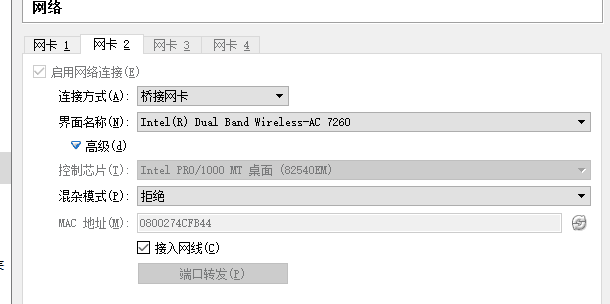 1. 设置桥接模式,virtualbox中设置