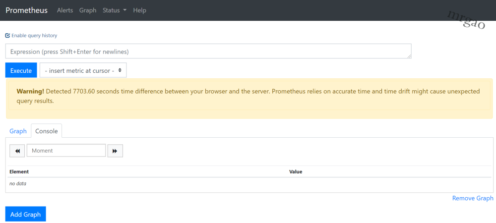 访问http://localhost:9090,进入到Prometheus Server。如果输入"up"并且点击执行按钮以后,并且Prometheus能够正常从node_exporter获取数据,则会看到以下结果: