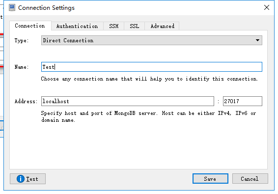 2,给创建的连接新建一个名称,并填上数据库的ip和端口。默认是localhost
