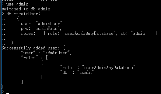 7 roles: [ { role: "userAdminAnyDatabase", db: "admin" } ]