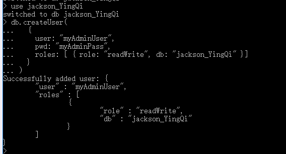 7 roles: [ { role: "readWrite", db: "jackson_YingQi" }]