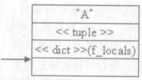 LOAD_LOCALS将f_locals压入运行时栈中,随后的RETURN_VALUE指令将运行时栈的f_locals返回给上一级的栈帧。这时候,我们又回到CALL_FUNCTION,CALL_FUNCTION获得class A的f_locals后,将其压入运行时栈,现在的运行时栈如图1-2