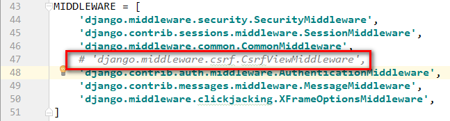 运行报错,那是因为Django中对http返回的内容做了相关的限制,如下注释settings.py中的代码,再次运行即可: