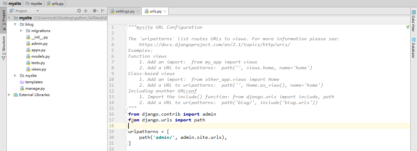 14 2. Add a URL to urlpatterns: path('blog/', include('blog.urls'))