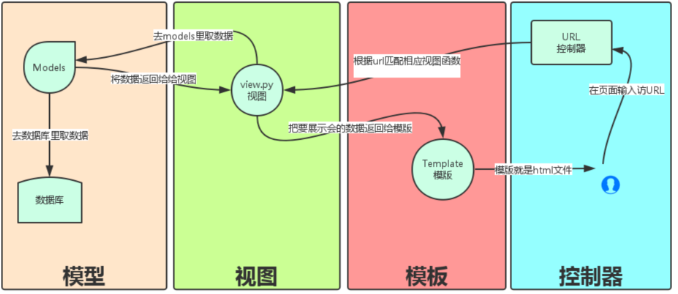 Django的MTV模式本质上与MVC模式没有什么差别,也是各组件之间为了保持松耦合关系,只是定义上有些许不同,Django的MTV分别代表: