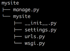 <1> 创建一个django工程 : django-admin.py startproject mysite ------- 其中mysite为项目名称,可以根据实际情况命名