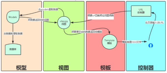 而Django是MTV模式,两者没有本质上的差别,也是为了各组件之间保持松耦合关系。