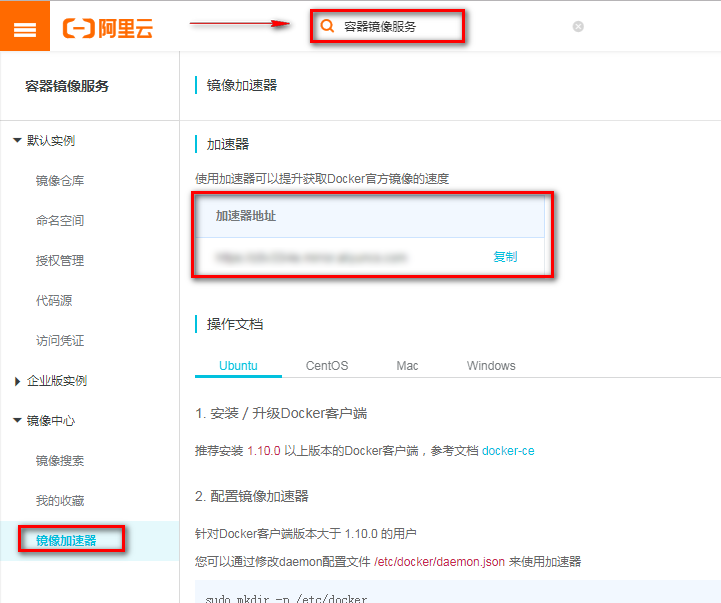 注:默认docker已安装,安装教程可以百度搜索,此处不再赘述。此处的HelloWorld因为墙的原因,将采用阿里云镜像加速的方式