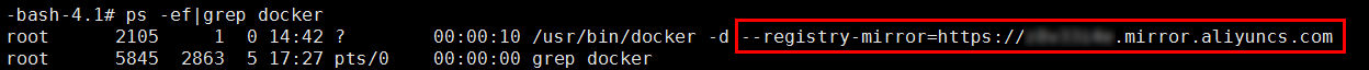 - 重启Docker后台服务:service docker restart 如果从结果中看到了配置的--registry-mirror参数说明配置成功