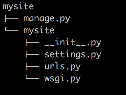 当前目录下会生成mysite的工程,目录结构如下:
