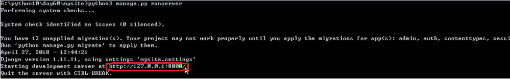 ③运行成功,默认会在127.0.0.1:8000下运行