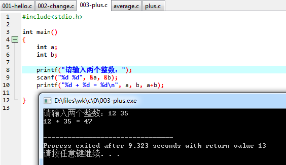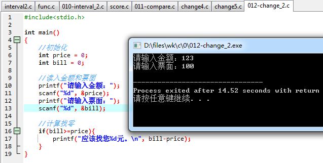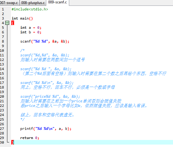 scanf() - 括号里的内容是它期望你输入的东西,少了或者不一致就报错 两个变量中间写了逗号,输入时也要有逗号。前面有price,输入时也需要输入price。 后面有空格,或者\n,输入时也得随便给一个数字之类来填补这个空要不然就出错。 (空格不行,回车也不行 - 这两者代表虚无)