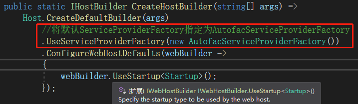 3. 修改 Program.cs 将默认ServiceProviderFactory指定为AutofacServiceProviderFactory