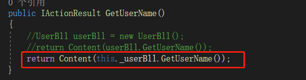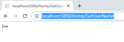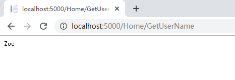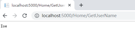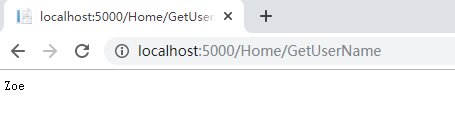 然后,运行项目,访问http://localhost:5000/Home/GetUserName 地址,运行如下: