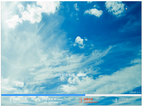 7.加载完系统之后电脑将会自动重启,接着开始部署系统这里需要一点时间,请大家耐心等待一下,如图所示: