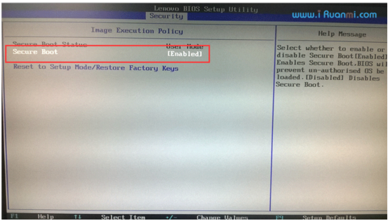 第二个,重置为设定模式/恢复出厂设置(Reset to Setup Mode/Restore Factory Keys)选项。这个选项用于清除或恢复内置的安全启动密钥。如果你的电脑预装了Win8/8.1,曾改动过相关设置选项,现在想恢复默认设置,则可以通过这个选项将密钥恢复到默认。