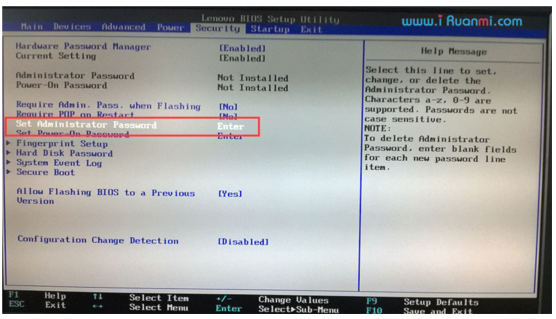 ▪部分机型需设置BIOS密码才可以修改Secure Boot,找到Set Supervisor Password设置码