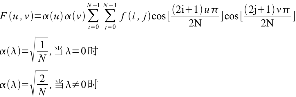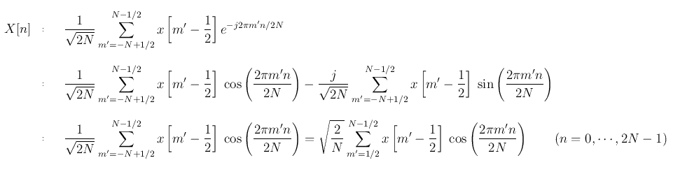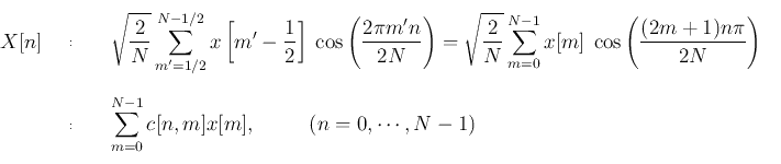 有DCT系数矩阵C∈RN×N,上述为C的第n行第m列的元素。又因为在n=2N的周期内,X[n]=X[-n]是偶对称的。进一步有: