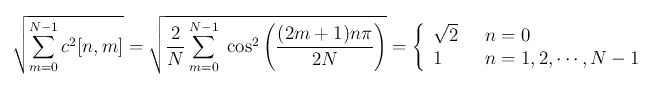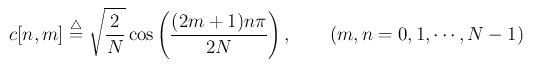 其中c[n, m]被a[n]修正。余弦变换矩阵为: