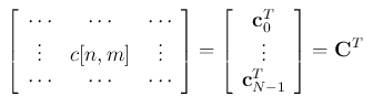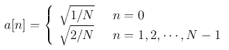 则n从N,...,2N-1的期间,X[n]是多余的,can be dropped。则n的范围变为0,...,N-1。除了第一个n=0,C的所有行向量都是正交归一化的: