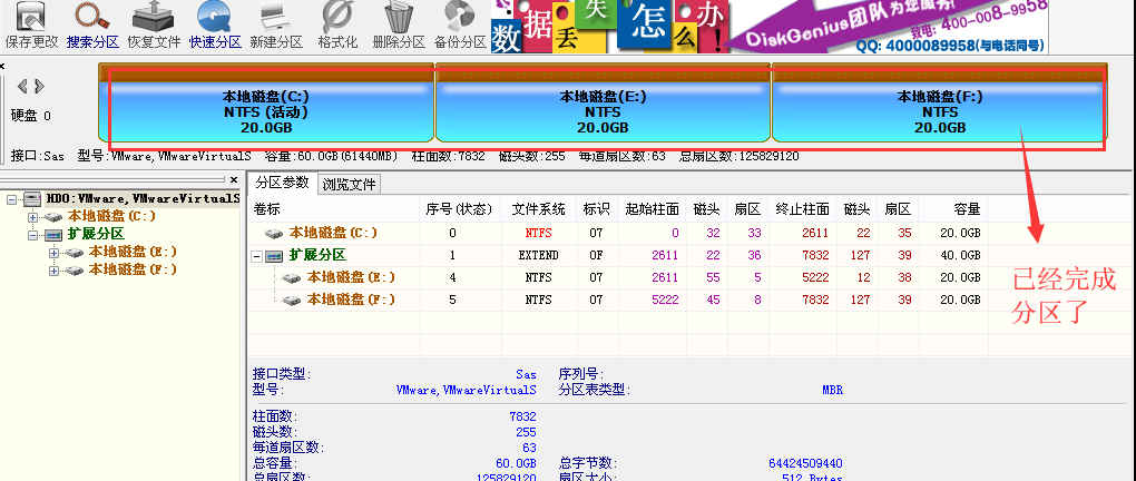 点击左上角的保存更改按钮即可完成分区。(出现选项全部按是即可)