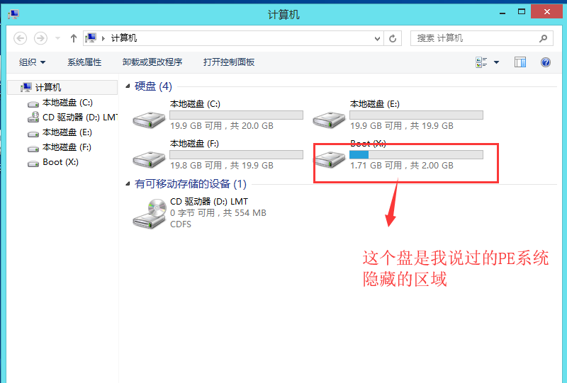 然后我们回到桌面,打开计算机查看是不是有3个盘,有的话而且还能打开证明已经分区成功。
