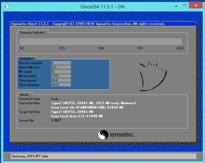 克隆后,重启计算机,重启后系统将会全自动解压系统文件(不要动,请不要中途断掉电源)。(我会发几个阶段的图片的)