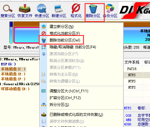 然后将所分的区全部删除,这也是修改硬盘格式时会造成数据全部清除。