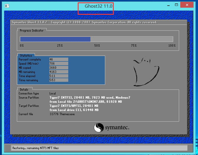 等待系统克隆完成,克隆完成后重启计算机进行系统文件解压。
