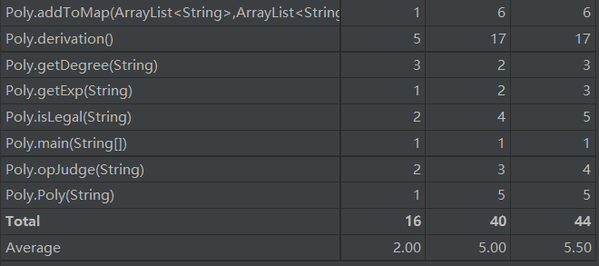 由于我的两个ArrayList的冗杂设置,,使我的求导过程麻烦了不少,也让我头脑昏昏沉沉的写出了几个致命的bug。。比如在强测中就被测出自己的符号解析在两个以上时会判断错误(完全漏了这项工作),以及互测中发现在空格错误上漏考虑了一种情况。只能心急吃不了热豆腐吧,不多花点时间思考便是这个后果。在求导部分没有影响结果的bug出现。