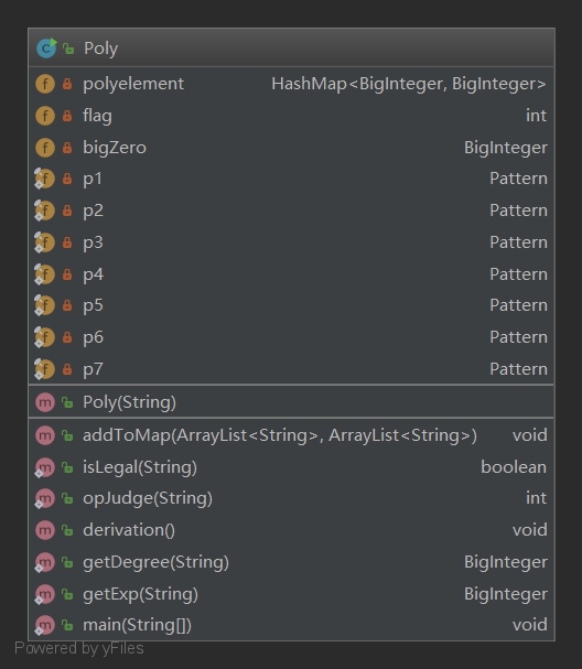 在解析输入时我仍然使用了大正则对整体做合法性判断,并对项逐个进行正则匹配。。怎么说呢,这次这样做仍能勉强存活下来。。但很快我就会体会到之后的作业会面临多大的障碍。。