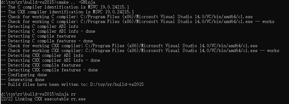 Change Dir: D:/toy/rr/build-vs2015/CMakeFiles/CMakeTmp