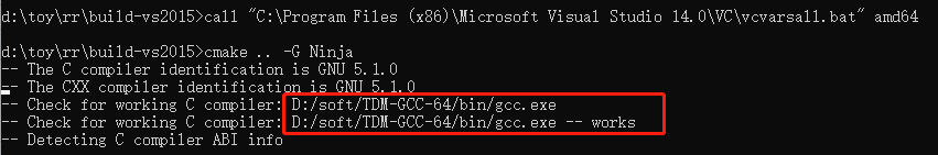 这就导致一个问题:即使调用了vcvarsall.bat来设定VS的环境,CMake调用的却是gcc: