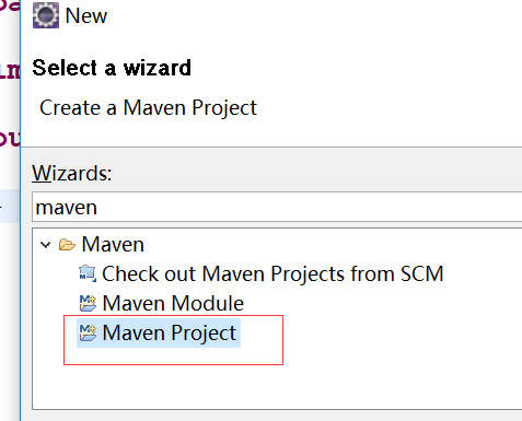 在eclipse中 new --->other--->maven ---->maven project 如下图: