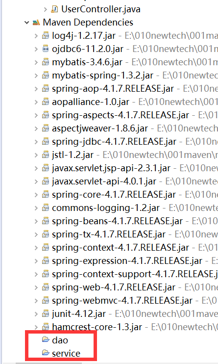 分了三个项目 Dao (jar) Service (jar) Controller (web)
