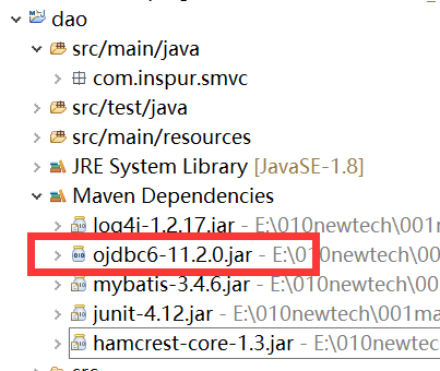 log4j 、ojdbc 、mybatis的 maven 插件jar包。注:ojdbc一定要安装到本地maven仓库,否则即使在 pom.xml中引入ojdbc maven依赖中也没有 ojdbc.jar