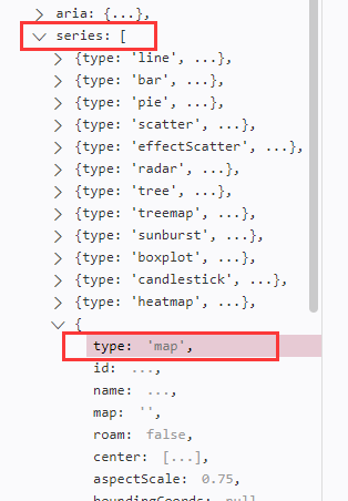 其中的geoIndex很关键,如果不设置为option里的对应的geo,map series 会自己生成内部专用的 geo 组件,但是也可以用这个 geoIndex 指定一个 geo 组件。这样的话,map 和 其他 series(例如散点图)就可以共享一个 geo 组件了。并且,geo 组件的颜色也可以被这个 map series 控制,从而用 visualMap 来更改。