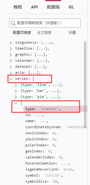 绘制散点图(气泡)是echarts的一种series:
