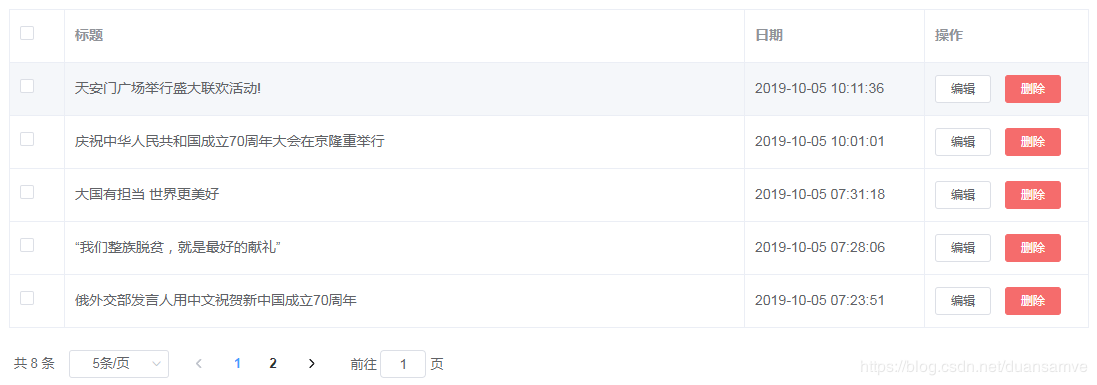 本次所使用的是vue2.0+element-ui2.12实现一个分页功能,element-ui这个组件特别丰富,它给我提供了很多Pagination分页方式,这里使用其中一个快速完成分页功能。