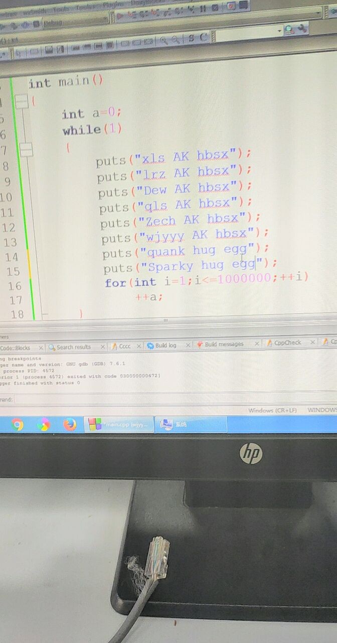 最后临走前在机子上挂上了几个 AK hbsx 和 wjyyy hug 0,但是后来被人篡改了,我要申诉有人改我代码(退役前兆×4