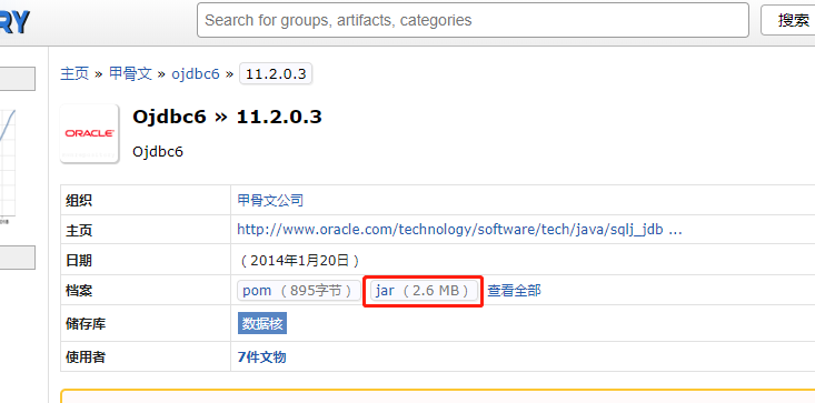 下载ojdbc6地址:https://mvnrepository.com/artifact/oracle/ojdbc6/11.2.0.3