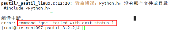 2、下载psutil模块后,安装python setup.py install过程中报错:error: command 'gcc' failed with exit status 1