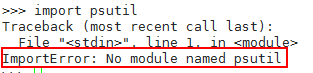 1、导入模块psutil时提示报错:ImportError: No module named psutil