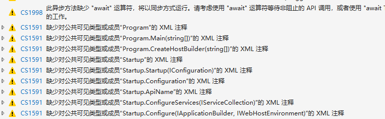 启用 XML 注释后会为未记录的公共类型和成员提供调试信息。如果出现很多警告信息 例如,以下消息指示违反警告代码 1591: