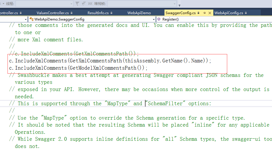 修改SwaggerConfig.cs代码,加载XML注释文档