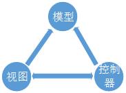 MVC架构将应用程序严格地划分为三层:模型、视图和控制,每层有具有各自的职责,不需要关注其他层具体实现。三层之间的关系如下图所示: